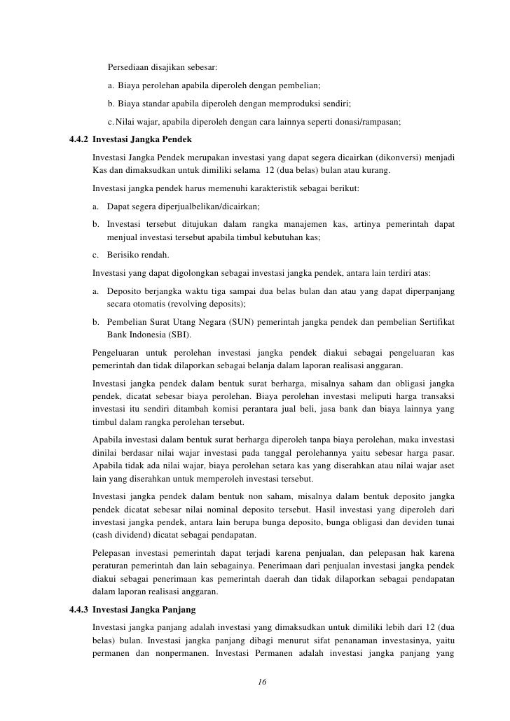 Investasi jangka panjang (long term investment) contoh investasi jangka panjang ini bisa berupa obligasi atau saham dari atau pinjaman kepada perusahaan lainnya, harga kekayaan yang tidak digunakan untuk operasional harian perusahaan seperti gedung, mesin atau modal yang di gunakan untuk tujuan khusus selain pembayaran jangka pendek. Investasi jangka pendek banyak dipilih oleh masyarakat terutama kalangan menengah ke bawah. Keyko yogi w 3.41.13.5.13 kolifah 3.41.13.5.14 maryam shodiq 3.41.13.5.15 mutiara p 3.41.13.5.16 ak 2 f jurusan akuntansi prodi akuntansi politeknik negeri semarang tahun ajaran 2014/2015 1 pengertian investasi jangka pendek kelebiahan uang kas dalam suatu.