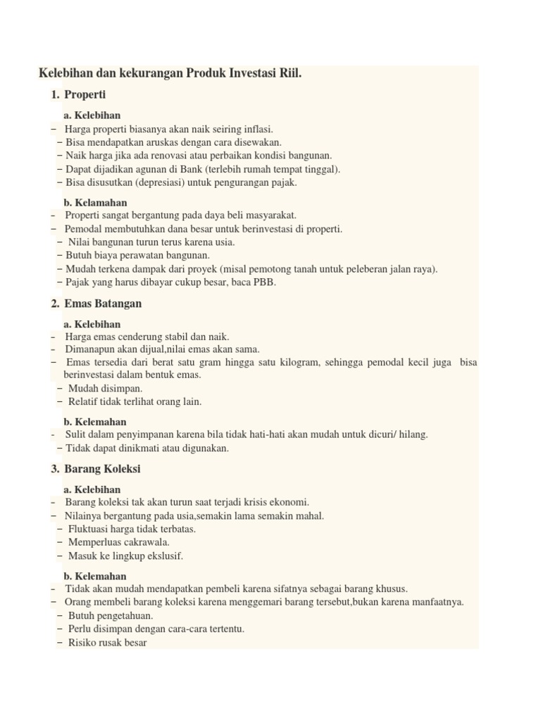 Kelebihan dan kekurangan Produk Investasi Riil.docx