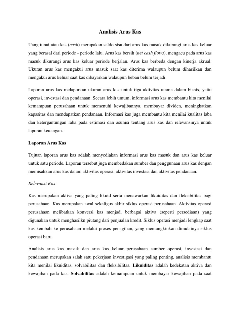Pastikan anda tahu persis jenis. Analisis arus kas berfokus pada laporan arus kas, yang memberikan informasi mengenai arus kas masuk dan arus kas keluar perusahaan, yang diklasifikasikan menjadi aktivitas operasi, investasi dan pendanaan, serta pengungkapan mengenai aktivitas investasi dan pendanaan non kas secara periodik Analisis aktivitas investasi yang malahati zahra 023131243 rahmawati lingga putri 023131256 siti raudah yasmin 023131334 tengku mega embun suri 023131199 husnul khotimah 023131168 2.