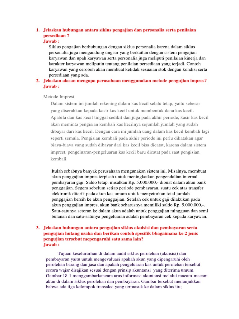 Contoh Soal Audit Siklus Penjualan Dan Penagihan Contoh